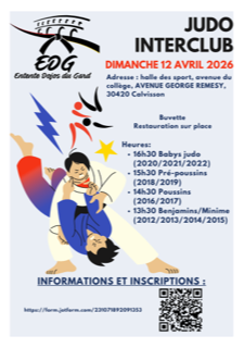 l’Entente des dojos du Gard vous invite à son tournois le dimanche 12 avril 2026 à Calvisson, au gymnase de Calvisson à côté du collège
